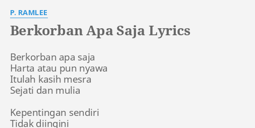Berkorban Apa Saja Lyrics By P Ramlee Berkorban Apa Saja Harta